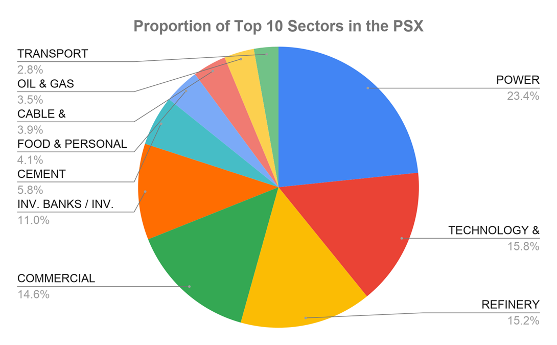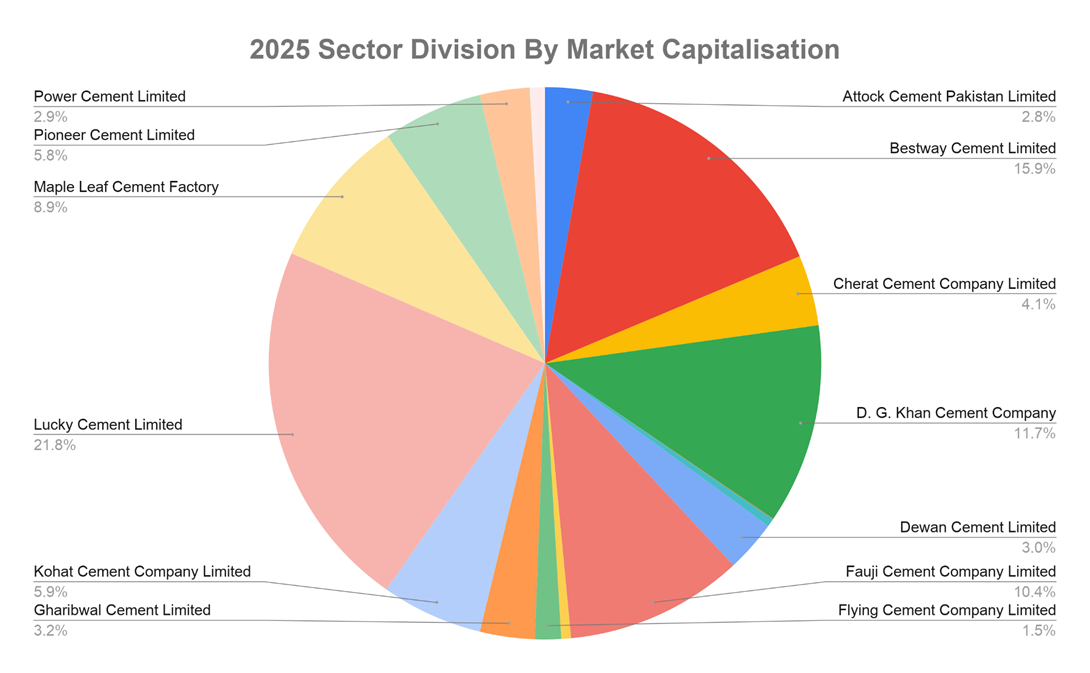 In Pakistan, Cement and its assorted materials, such as clinkers and concrete mixes, are produced by both publicly listed companies and private family enterprises. Cement Sector is listed in the Pakistan Stock Exchange and currently 21 companies are licensed under the sector code. It is the 7th Largest Sector in terms of Market Capitalization in the Pakistan Stock Exchange. Here is a greater view of where it fits.