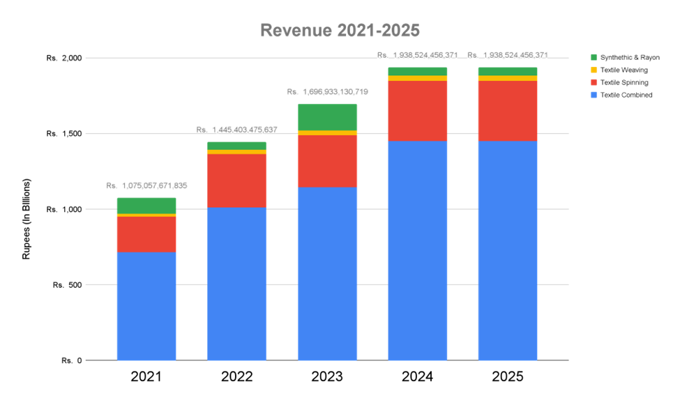 | Textile Combined | Rs. 716.16B | Rs. 1.01T | Rs. 1.45T | Rs. 375.50B | Rs. 672.69B |