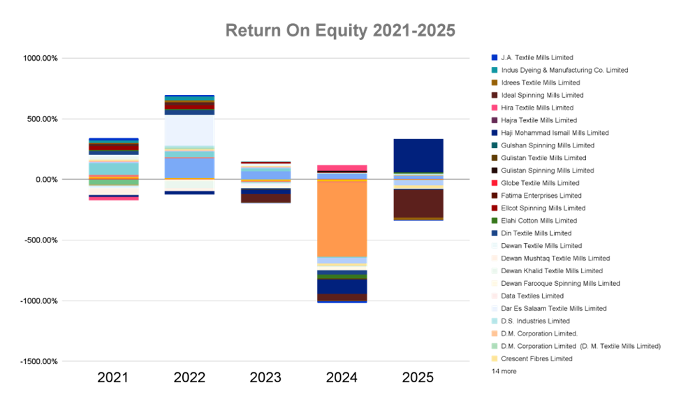 - The High-Risk: At the opposite end of the spectrum, specialized players are facing an existential crisis. Quetta Textile Mills reported a catastrophic Net Profit Margin of -100.65% in 2025, with a net loss of Rs. 1.63 billion. Similarly, Dewan Salman Fibre has faced persistent losses, peaking at a Rs. 2.19 billion deficit in 2023.